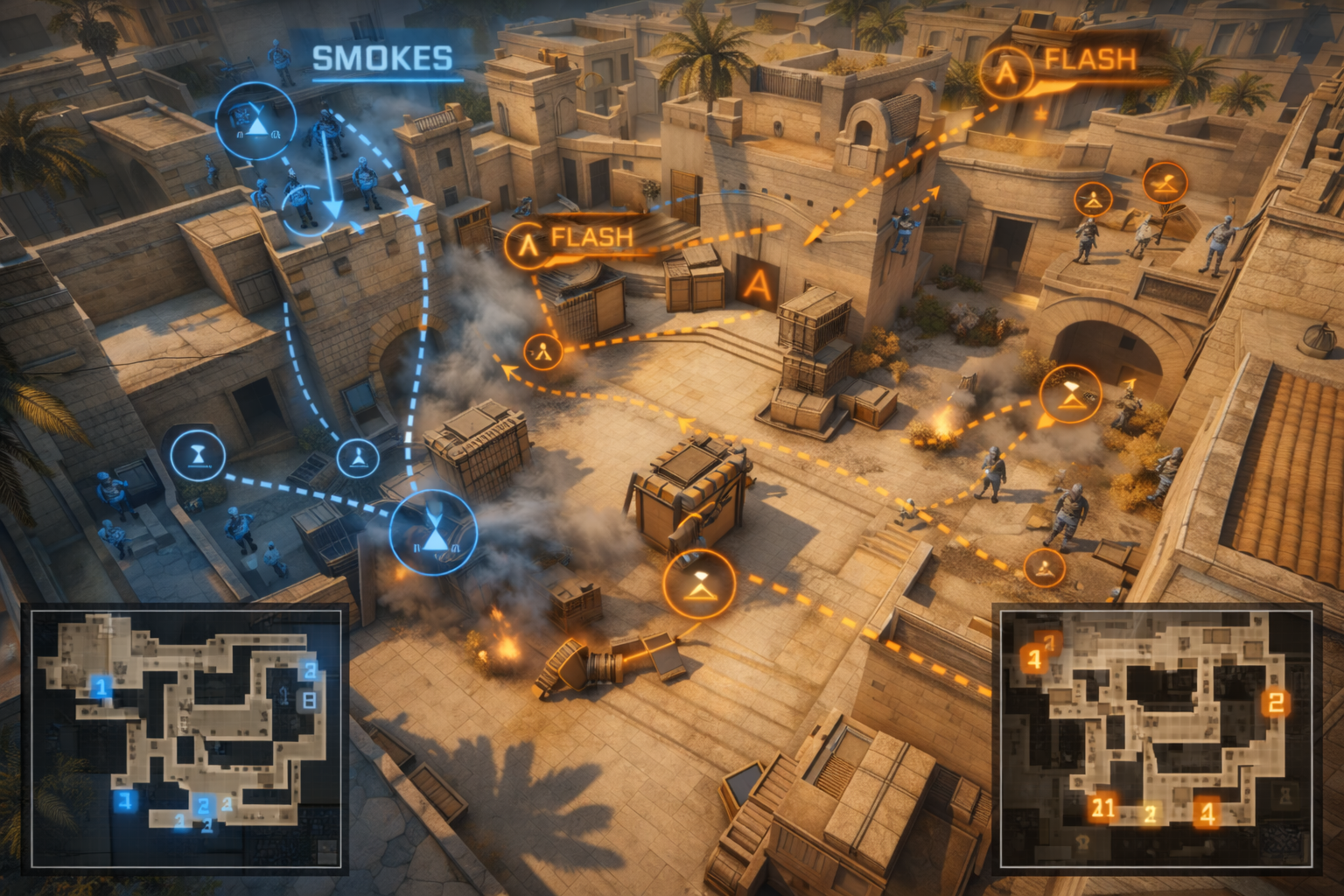 Domine timings, ângulos, smokes e leitura de rota para ter vantagem tática.